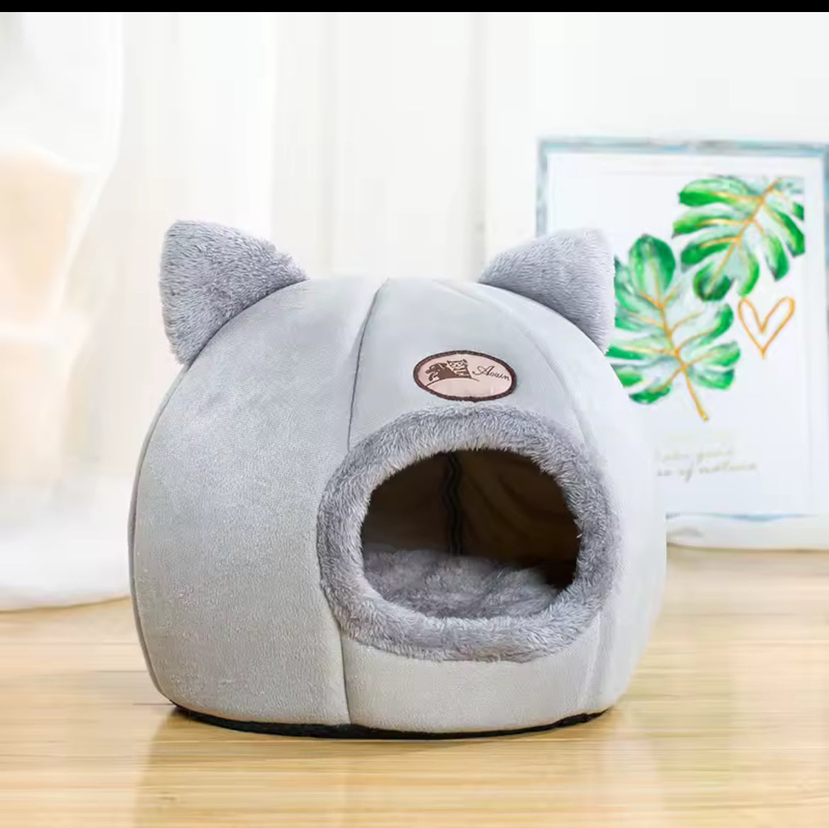 cálida y acogedora casita de gatos, refugio semicerrado para mascotas pequeñas y medianas para todas las estaciones con cojines para uso en interiores y exteriores