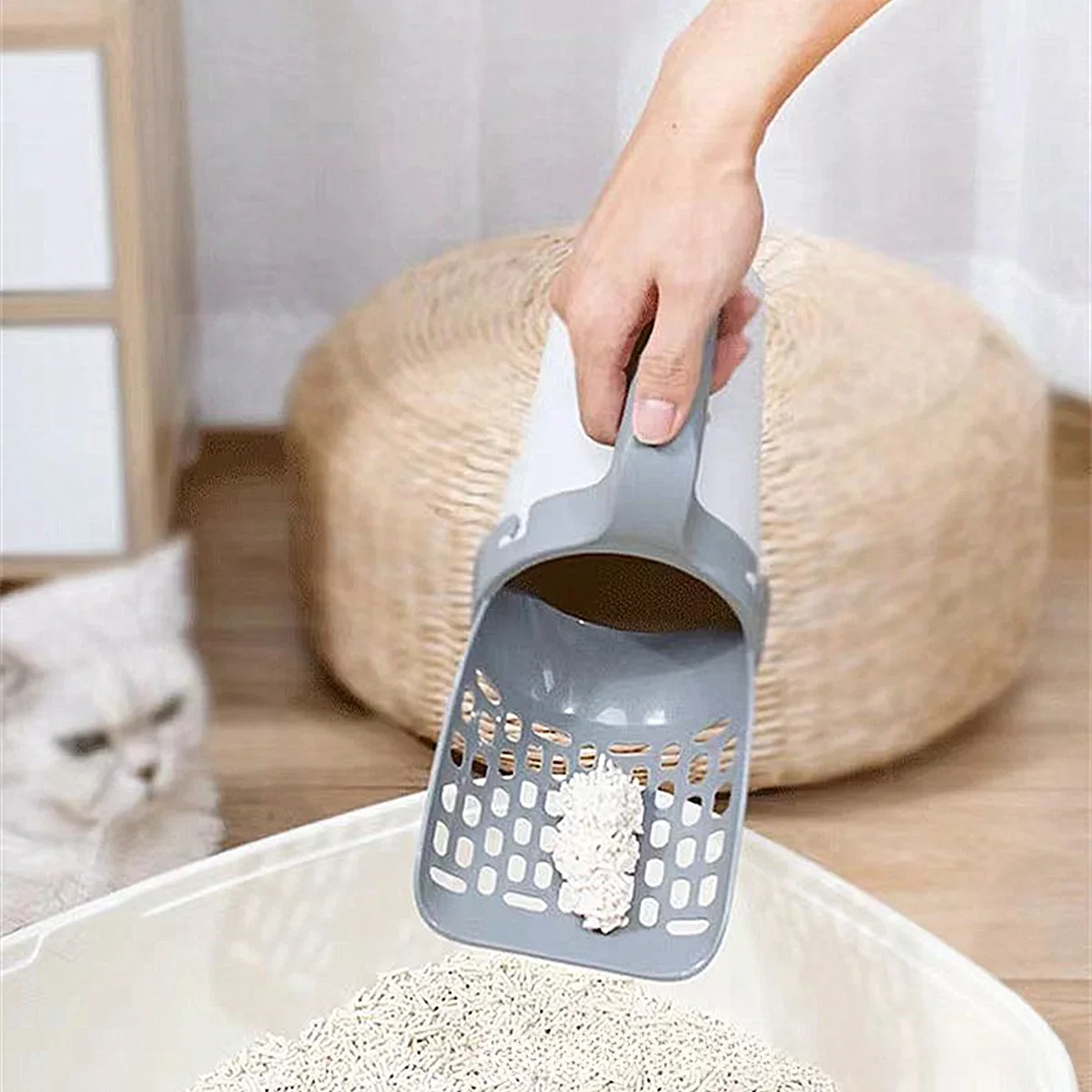 Pala para arena de gatos con bolsa de recambio – Recogedor de heces con filtro para caja de arena autolimpiante